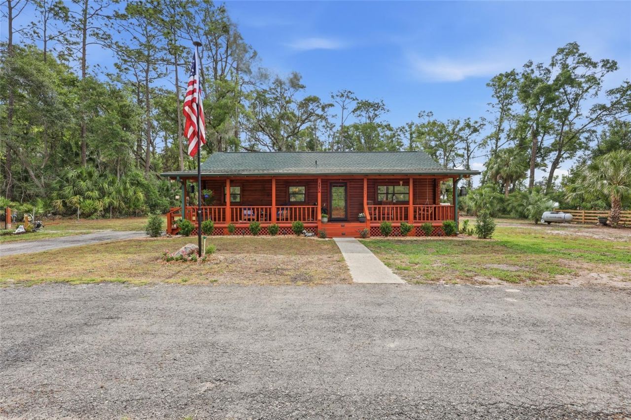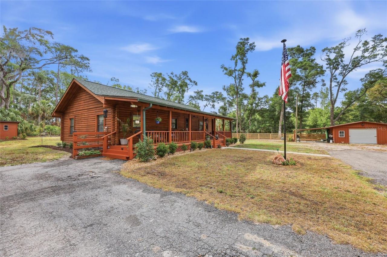 Picture an authentic 3-bed, 2-bath log cabin tucked away from the world, where the scent of fresh pine and the quiet of the Florida countryside invite you to sit for a while on the front porch and simply breathe! This 1-acre property in Chiefland's Enchanted Forest stands as a masterclass in rustic durability, fortified by a 2025 roof, a 2-year-old water heater, and a recently serviced HVAC system that ensures total modern comfort within its timber walls. Crossing the threshold, you find yourself under the dramatic height of vaulted wood ceilings as the home unfolds into a warm interior where luxury vinyl plank flooring and a custom brick feature wall connect the spacious living area to a kitchen finished with tile flooring, wood cabinetry, newer granite countertops, and 2024 stainless steel appliances. The thoughtful layout carries you through three cozy bedrooms, including a spacious primary suite with an ensuite bathroom and a former porch that has been beautifully enclosed with closets to serve as a third bedroom. Both updated bathrooms feature gray rectangular tile flooring, newer vanities, and white painted wood ceilings. The magic extends to the grounds, where a fully fenced yard - with a property line extending approximately 40 feet beyond the back fence - gives way to a powerhouse workspace consisting of two permitted structures: a dedicated 20x20 workshop and a new 30x40 structure engineered with 12-foot ceilings and 6-inch concrete floors to support a vehicle lift. This peaceful setting offers the freedom of no HOA. You also remain perfectly connected to the community, with Chiefland Elementary, Middle, and High Schools all just a short 10-minute drive away. Adventure is right in your backyard with the crystal-clear waters of Manatee Springs State Park nearby for unrivaled snorkeling and swimming, while the paved Nature Coast State Trail offers miles of scenic hiking and biking. Even with this secluded feel, the convenience of the local shopping center and a variety of dining options are just 5 miles from your front door. Don't just dream of a nature-focused lifestyle-schedule a private tour and start your next chapter in a charming log cabin in the woods!
