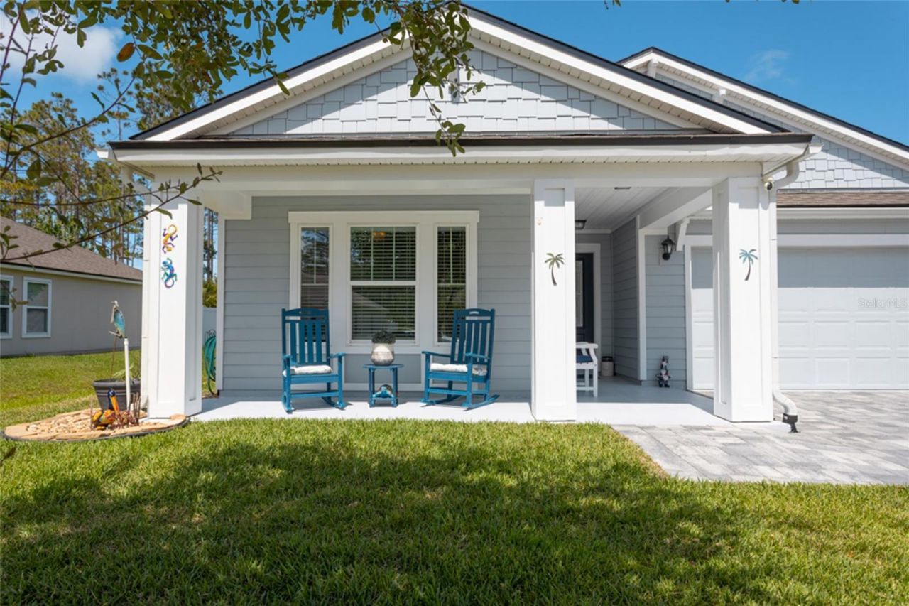 Welcome to this beautifully designed 2 Bedroom, 2 Bath home with a versatile Flex Room-perfect for a home office, den or guest space. The open-concept layout offers a seamless flow, ideal for both everyday living and entertaining. The spacious Kitchen is the heart of the home, featuring a large center island, elegant quartz countertops, lots of cabinets and a walk-in pantry that provides ample storage and convenience. Generous closet space throughout adds to the home's thoughtful design. The large primary en-suite touts a tray ceiing and 2 oversized walk-in closets. The primary bath has a large shower with built-in bench, a double sink vanity and linen closet. Upgrades include crown moldings, ceiling fans, recessed lighting and high ceilings. Step outside and enjoy a charming front porch and a screened lanai-perfect for relaxing and embracing the Florida lifestyle year-round. The paver driveway adds excellent curb appeal, leading to a spacious 2 car garage that offers both convenience and additional storage. Beautifully maintained. Located just a short 10 minute drive to Flagler Beach, this home also offers access to a resort-style gated community amenities, including a stunning infinity pool, fitness center, playground and dog park. This home combines comfort, style and an unbeatable location-ready for you to move in and enjoy! Note: There is no CDD fee in this gated community of Grand Landings.
