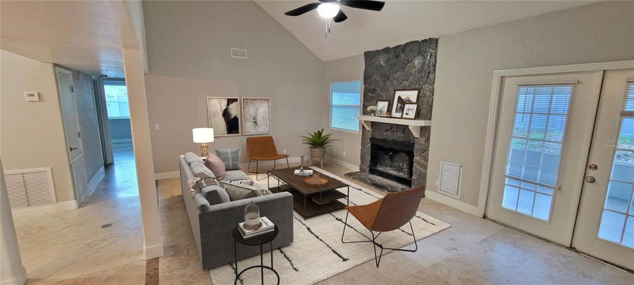 One or more photo(s) has been virtually staged. Welcome to this beautiful & unique, 2-story, 3 bedroom & 3 bath home! This home features a partially stone exterior, stone/travertine floors, a stone fireplace, a screened porch, & a fenced-in private backyard. There is a double-primary bedroom that is handicap accessible with a large walk-in closet. The second primary bedroom upstairs has a jetted soaker tub/shower combo & a huge walk-in closet. The property also features a kitchen with double ovens. Enjoy unlimited freedom with no HOA!