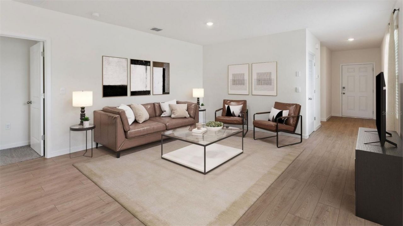 Under Construction. Crossroads at Kelly Park presents the Baldwin. This all concrete block constructed, one-story layout features 4 bedrooms and 2 bathrooms. As you enter the foyer you are greeted by with an open concept living space. The kitchen overlooks the dining and living room, while having a view to the oversized outdoor living space. The well-appointed kitchen features an island with bar seating, plentiful cabinet with beautiful quartz countertops and stainless steel appliances, making entertaining a breeze. Bedroom one, located off the living space, has an en suite bathroom with double vanity and spacious walk-in closet providing ample space for storage. Three additional bedrooms and one full bath are located at the front of the home along with a closet and laundry room. Like all homes in Crossroads at Kelly Park, the Baldwin includes Smart home technology package which allows you to control your home with your smart device while near or away. *Photos are of similar model but not that of exact house. Pictures, photographs, colors, features, and sizes are for illustration purposes only and will vary from the homes as built. Home and community information including pricing, included features, terms, availability and amenities are subject to change and prior sale at any time without notice or obligation. Please note that no representations or warranties are made regarding school districts or school assignments; you should conduct your own investigation regarding current and future schools and school boundaries.*
