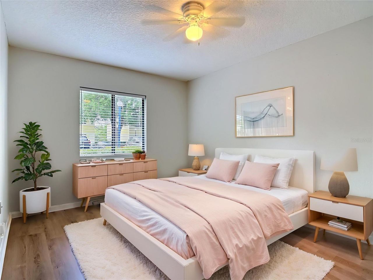 This 2-bedroom 2- bathroom Condo is just off Lake Mary Blvd and is move in ready. All rooms are freshly painted, and the popcorn ceilings were replaced with knockdown ceilings in 2025. Both bedrooms and entrance way have vinyl flooring. Kitchen, living room, Dining room and both bathrooms have ceramic tiling. Condo has Stainless Steel appliances in kitchen with Refrigerator being replaced in 2026. Laundry room in located inside unit. There is a small screened in patio which has a storage closet to hold your extra items. LOW HOA FEES. Property is located close to 417 and I-4, as well as being just minutes to the Lake Mary Sun rail Station, as well as being close to Lake Mary Shoppes. Community has an in-ground swimming pool & lounge deck as well as a playground.